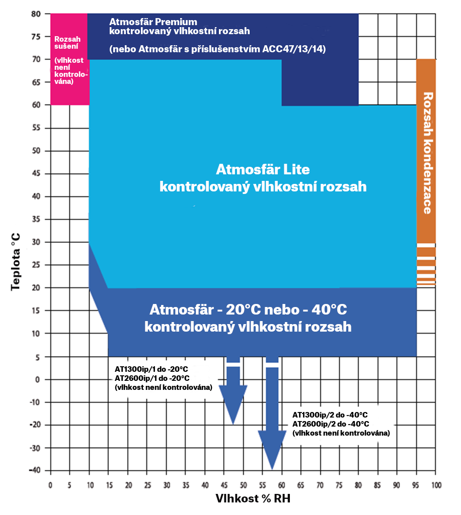 | Režim kondenzace | nastavitelný od okolní teploty do +70 °C | daný 95 % - 100 % RH | N/A |