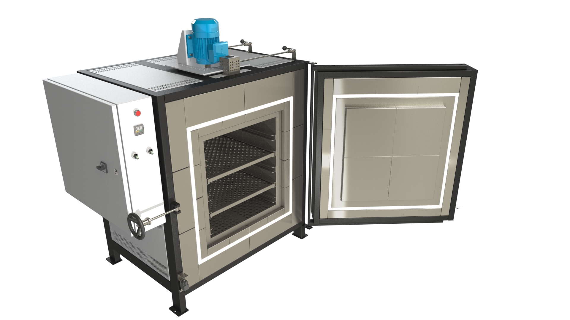 Vysoce kvalitní elektrické průmyslové pece SNOL s indukovanou cirkulací vzduchu. Umožňují ohřev z obou stran pomocí trubkových topných těles.