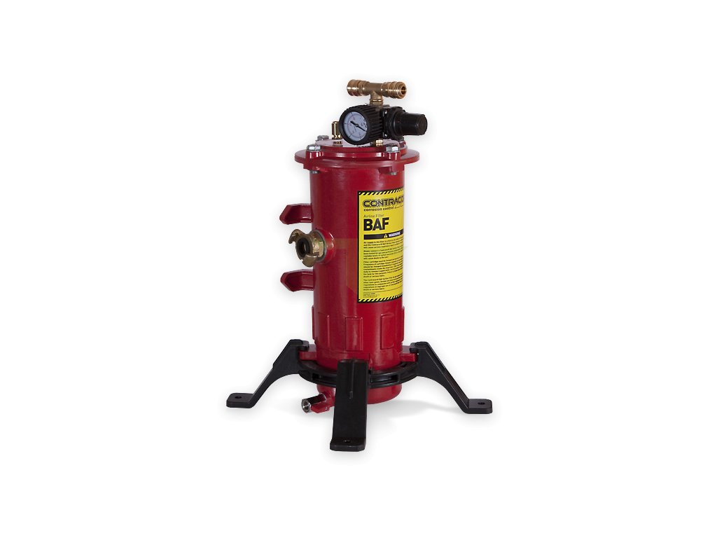 Vzduchový filtr BAF-1 pro tryskací kukly je vybaven regulátorem tlaku, bezpečnostním ventilem, vypouštěcím ventilem, manometrem, mosazným T kusem a přívodní rychlospojkou se sponou. Eliminuje až 98 % částic o velikosti až 0,5 mikronů.